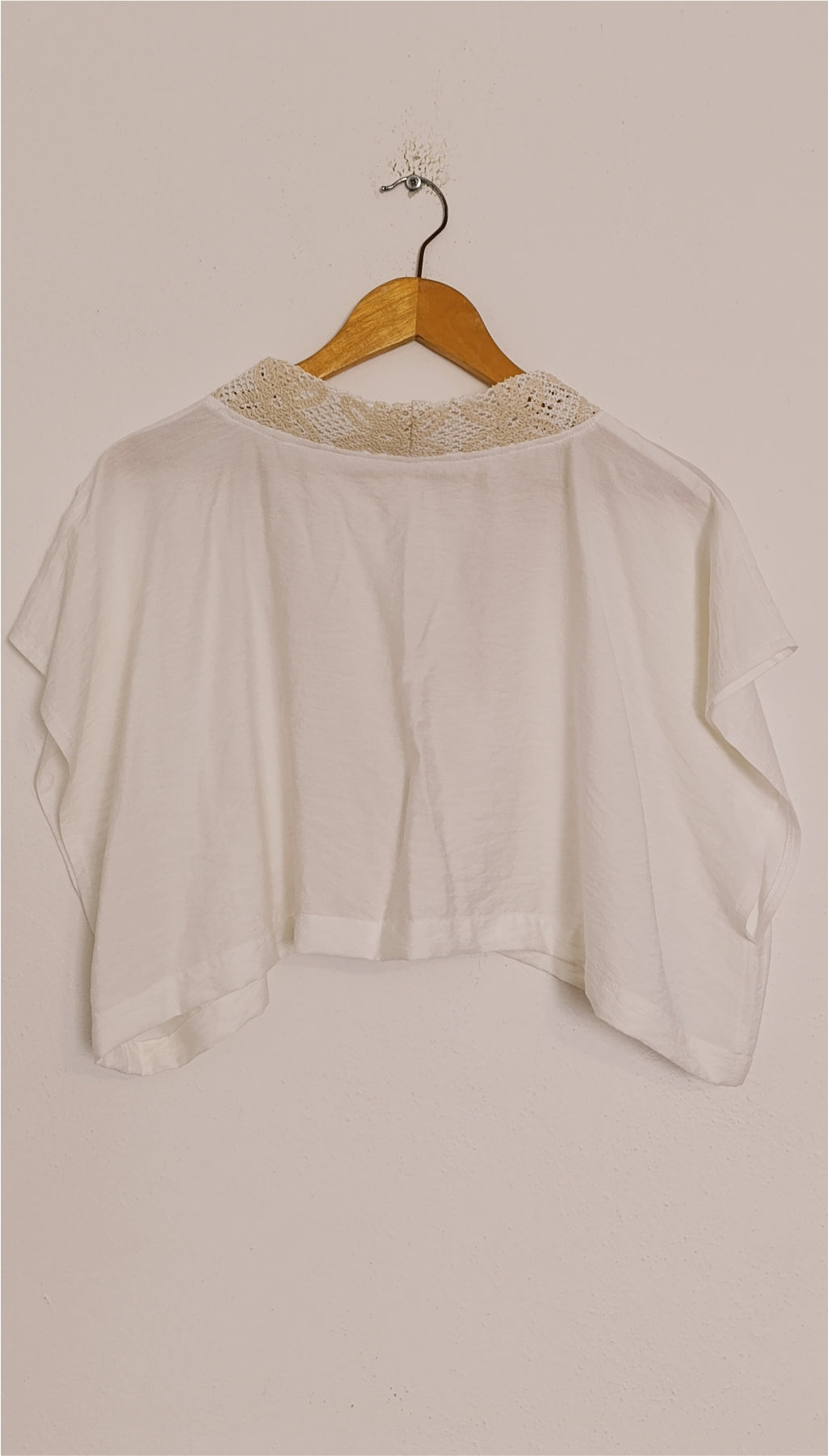 Descubre nuestro top de crochet, una prenda que eleva tu estilo con su delicado detalle de crochet en el cuello. Su diseño corto es fácil de llevar y resalta tu figura de manera favorecedora. Combínalo con nuestro pantalón barrel de la misma línea para un look espectacular. ¡Siente la confianza y la elegancia en cada ocasión! De nuestra firma María Free.