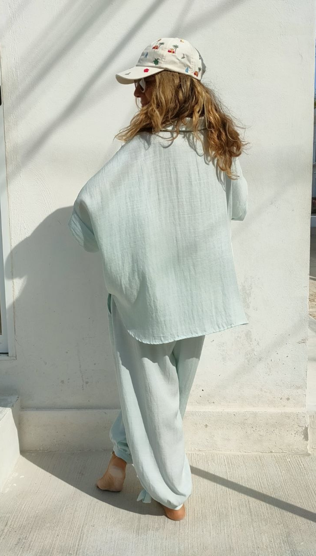 Descubre la elegancia y comodidad de la Camisa Góndola Mar. Su tejido fluido te envolverá en frescura durante todo el día. Con un diseño over size, cuello camisero y práctico bolsillo, es la elección perfecta para combinar con el pantalón Góndola de la misma colección. Viste con confianza y comodidad! De nuestra firma María Free.