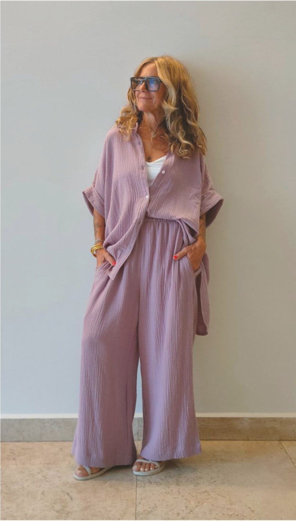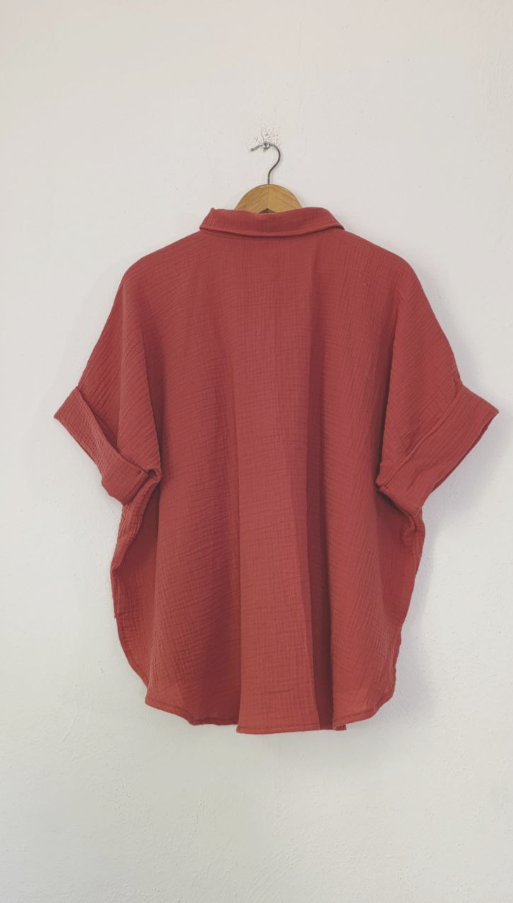 ¡Esta camisa es una prenda imprescindible en tu armario! Con su diseño oversize y mangas corta, está confeccionada en algodón para que puedas llevarla cómodamente. Combínala con tu prenda favorita o el pantalón a juego de nuestra firma María Free. ¡No querrás quitártela!