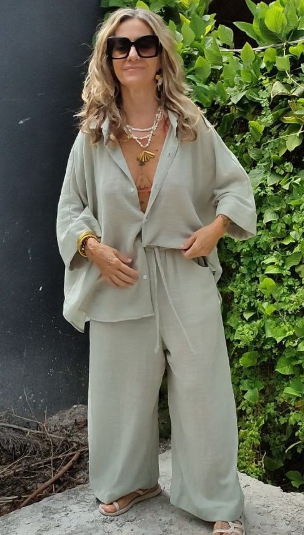 Confeccionado en algodón, este pantalón amplio cuenta con bolsillos y una goma en la cintura para un ajuste perfecto. Perfecto para cualquier ocasión, combínalo con nuestra camisa a juego. Es de nuestra firma María Free. ¡No te lo pierdas!